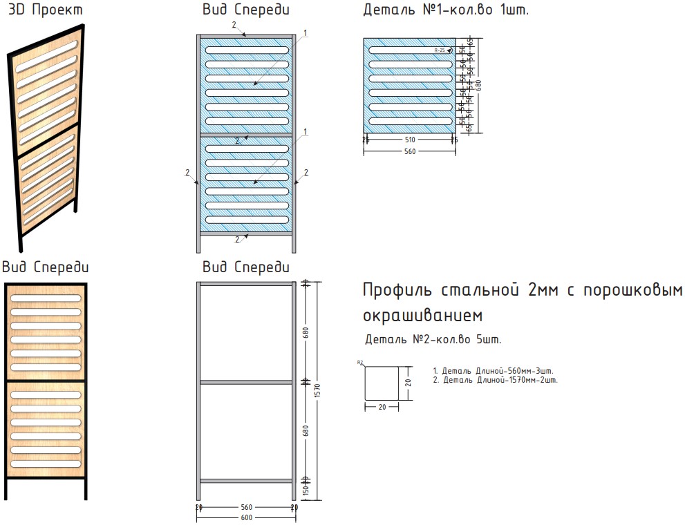 Выполнена из стального профиля черного цвета с порошковым покрытием, которое обеспечивает устойчивость к появлению коррозии и перепадам температуры.