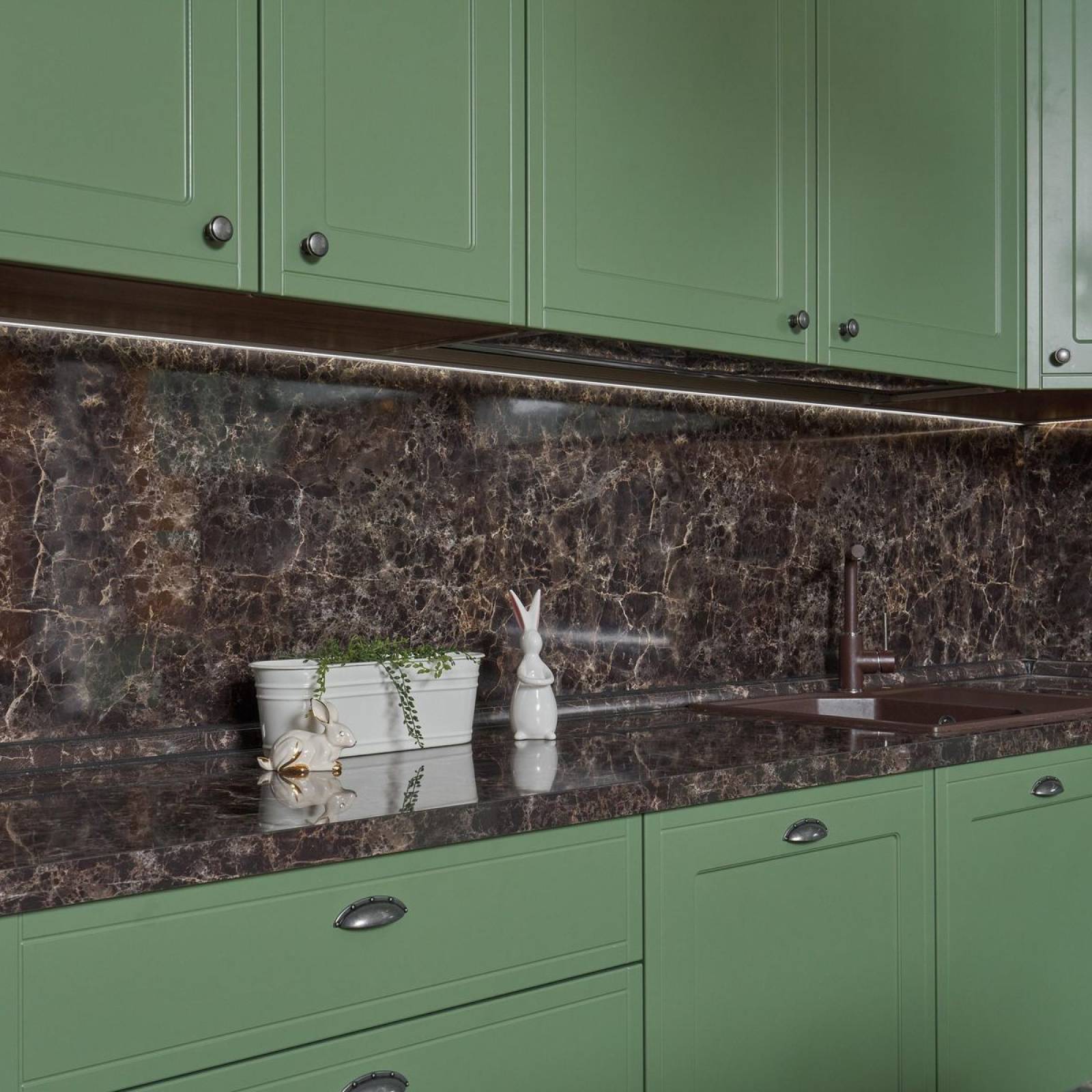 Отделка кухни оливкового цвета